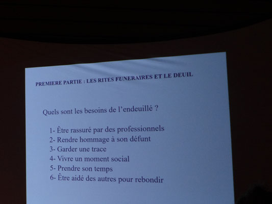 Aujourd’hui l’endeuillé à besoin : d’être rassuré par des professionnels ; rendre hommage à son défunt ; garder une trace ; vivre un moment social ; prendre son temps ; être aidé des autres pour rebondir.