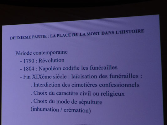 Fin 19ème siècle : laïcisation des funérailles ; interdiction des cimetières confessionnels ; choix du caractère civil ou religieux ; choix du mode de sépulture (inhumation, crémation dans les grandes villes).